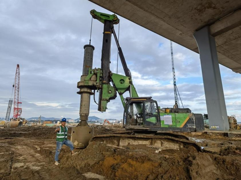 考察團(tuán)實(shí)地參觀了泰信機(jī)械生產(chǎn)線及鉆機(jī)調(diào)試中心,重點(diǎn)了解其自主研發(fā)的中小型旋挖鉆機(jī)、卡特彼勒底盤旋挖鉆機(jī)、低凈空旋挖鉆機(jī)以及電建系列鉆機(jī)等核心裝備。其中,低凈空旋挖鉆機(jī)憑借復(fù)雜環(huán)境下的高效施工能力,已應(yīng)用于深中通道等國內(nèi)外重點(diǎn)項(xiàng)目;智能電建鉆機(jī)通過輕量化設(shè)計(jì)與智能化控制,施工效率較傳統(tǒng)模式提升40倍,獲電力建設(shè)行業(yè)重點(diǎn)推廣。中建四局江蘇建投團(tuán)隊(duì)對泰信機(jī)械“小型化、定制化、多面化和國際化”四個(gè)方面發(fā)展并孕育核心優(yōu)勢給予高度評價(jià)。