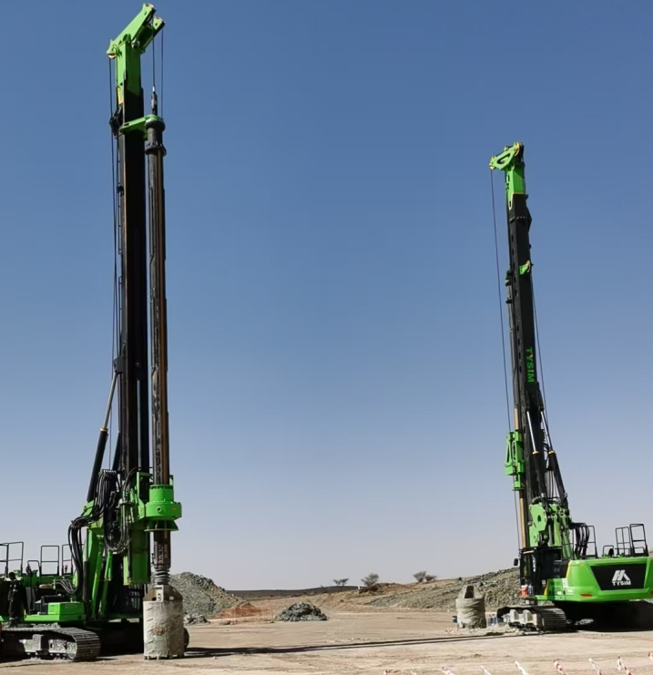 Recently, several equipment of TYSIM Piling Equipment Co., Ltd. (hereinafter referred to as "TYSIM")the multiple rotary drilling rigs with Caterpillar chassis developed have performed outstandingly in the construction of the power tower piles in Mecca, Saudi Arabia, demonstrating strong technical strength and efficient operation capabilities. The pile diameter requirement of the site is 800mm, the pile depth is about 12m, and the stratum is mainly sand and gravel. With its excellent performance, the equipment of TYSIM has achieved a high working efficiency of one pile in half an hour, which has been highly recognized by the local construction party.