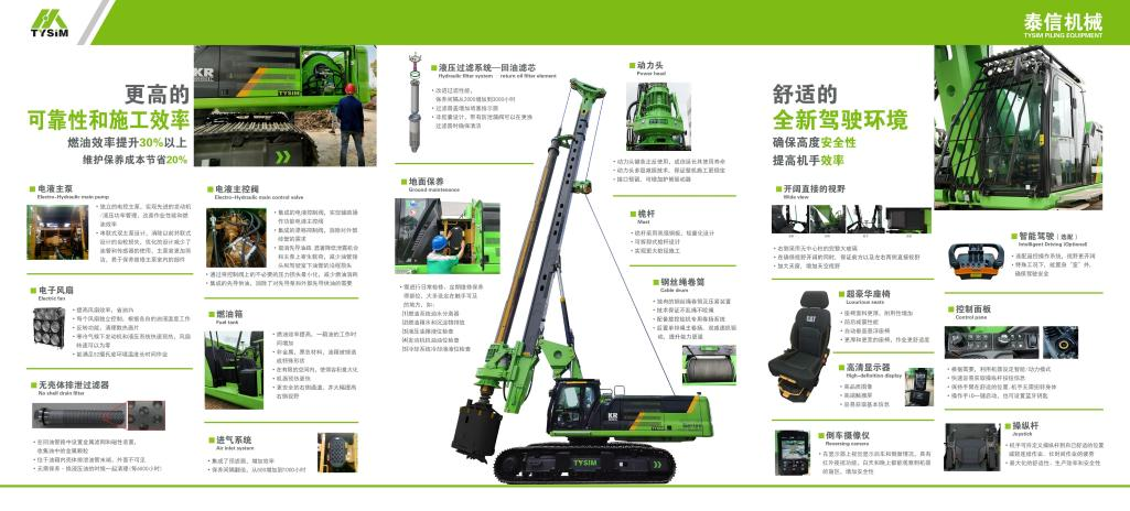 在這一超級工程中,泰信機械研制的卡特彼勒底盤旋挖鉆機KR360C展現(xiàn)出卓越性能。該設(shè)備與樁工陸英會伙伴北京振沖的振沖器協(xié)同作業(yè),針對填海石料層硬度高、緊密性強的特點,通過 0.8 米直徑引孔精準(zhǔn)穿透20~22米的回填層并下鋼護筒,隨后由振沖器實施碎石緊密加固。KR360C搭載的卡特彼勒全電控液壓系統(tǒng)可實現(xiàn)動力與負(fù)載智能匹配,在回填石料層鉆進施工過程中保持穩(wěn)定扭矩輸出,配合自主研發(fā)的 3 馬達動力頭與一鍵入巖模式,成孔效率較傳統(tǒng)設(shè)備提升30% 。